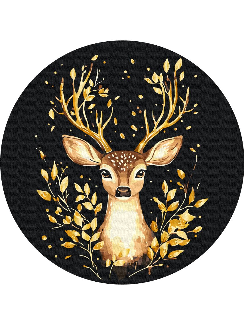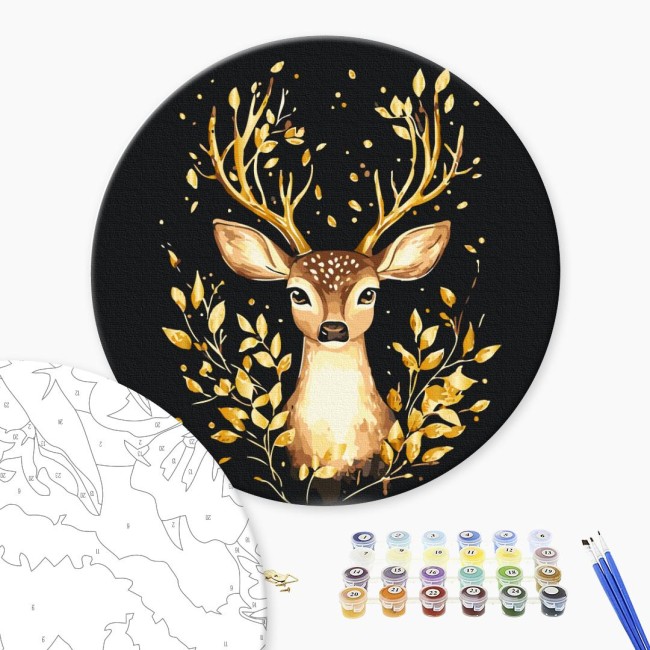 გასაფერადებელი ნომრებით BrushMe მრგვალი RCB00113M Deer (Size M) O-40სმ ტილო, აკრილის საღ, ფუნჯი
