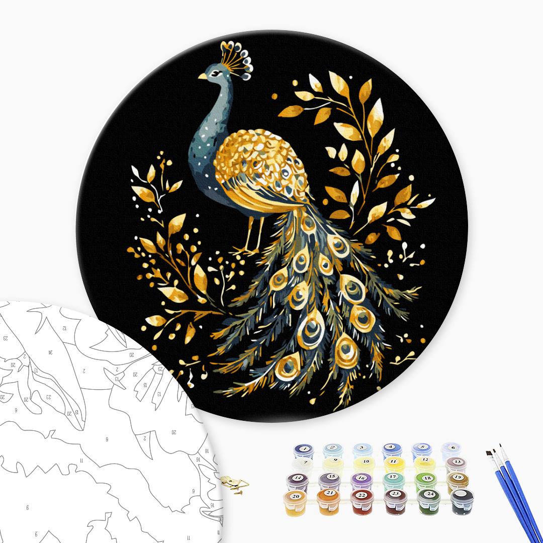 გასაფერადებელი ნომრებით BrushMe მრგვალი RCB00114M Peacock (Size M) O-40სმ ტილო, აკრილის საღ, ფუნჯი