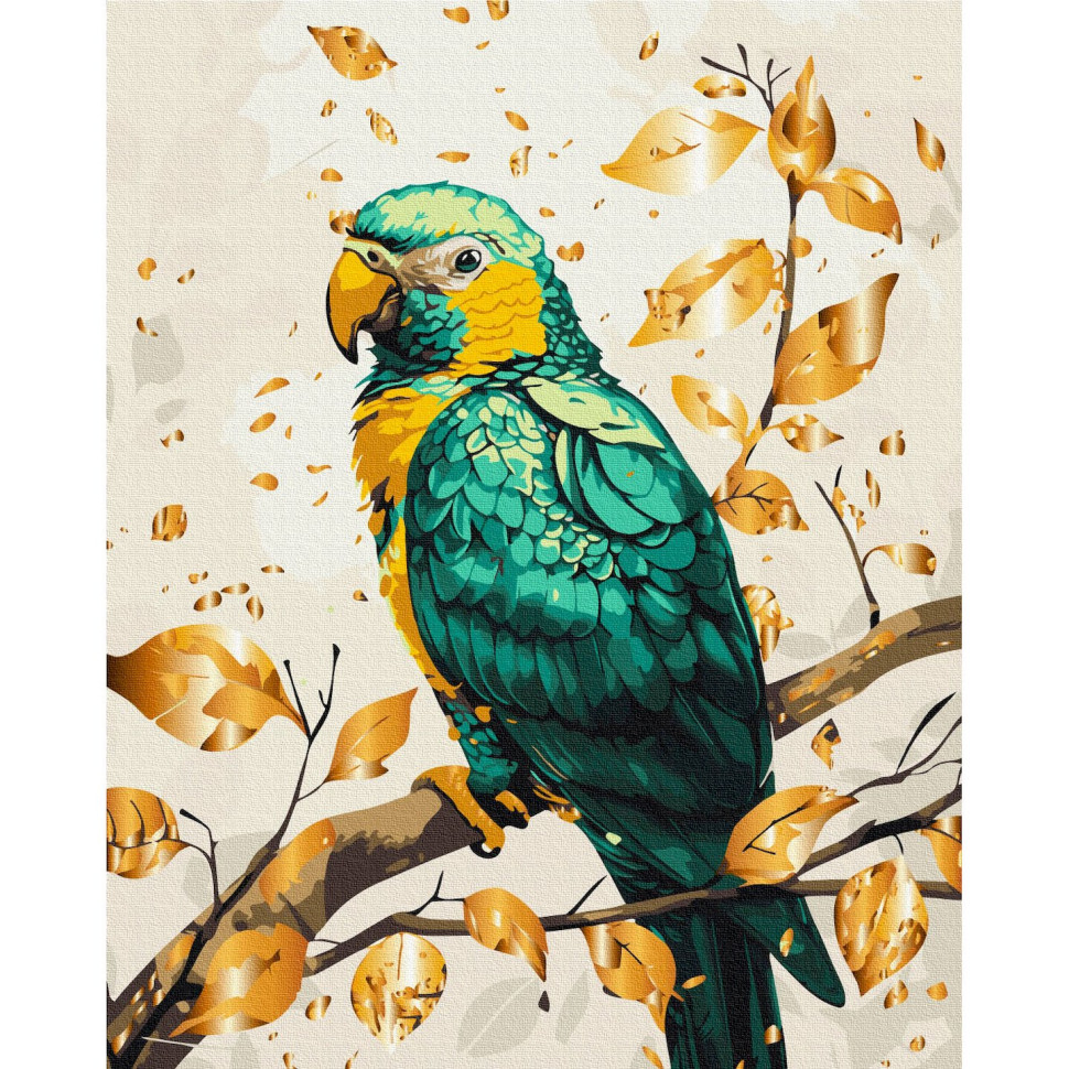 გასაფერადებელი ნომრებით BrushMe BS54123 Emerald parrot with metallic colors 40*50სმ. ტილო, აკრილის საღ, ფუნჯი