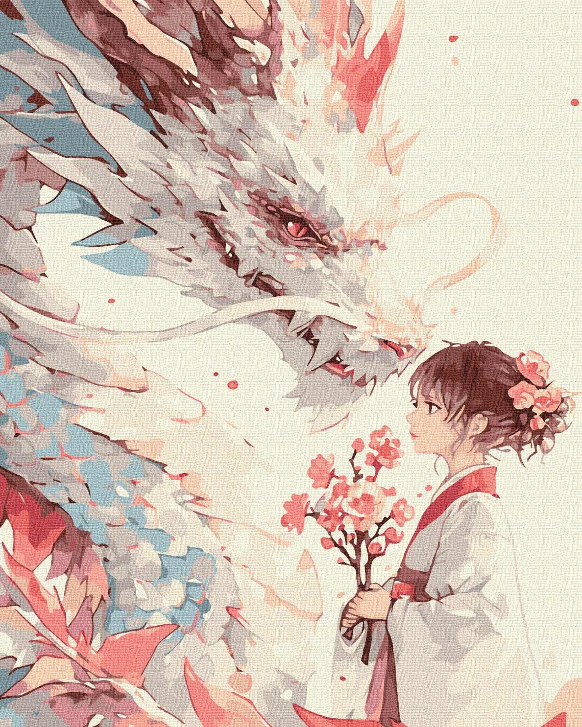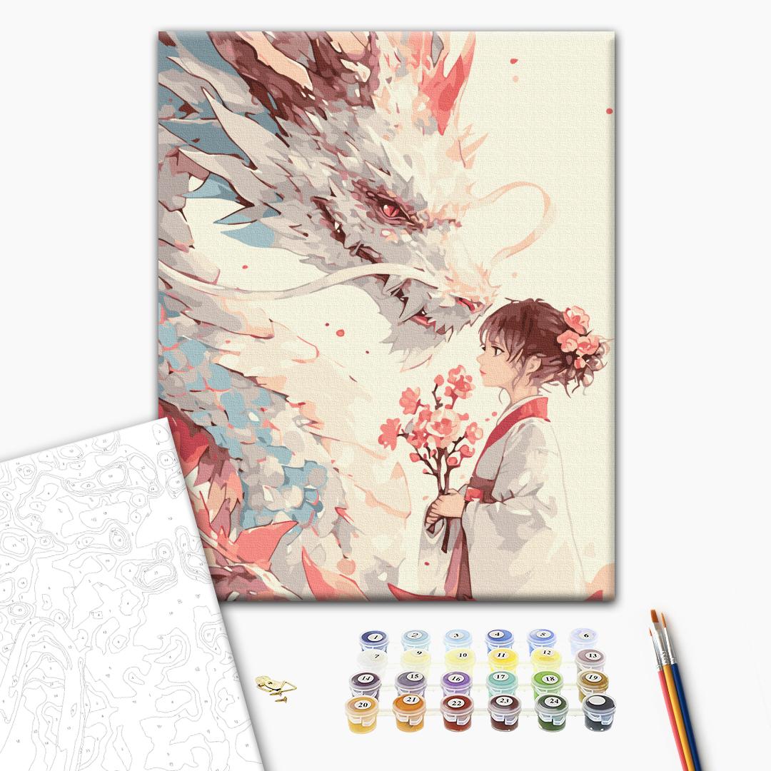 გასაფერადებელი ნომრებით BrushMe BS54083 A girl and her dragon 40*50სმ. ტილო, აკრილის საღ, ფუნჯი