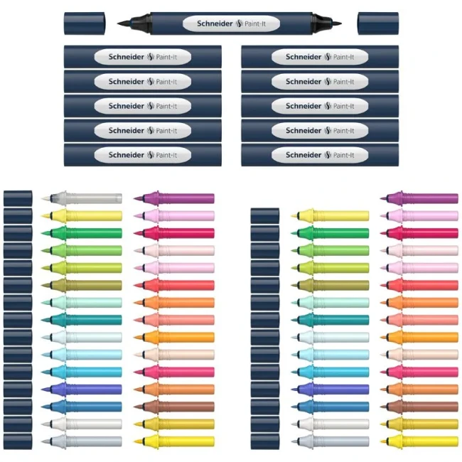 ორმხრივი მარკერი Schneider Paint-It Twin 040 ფუნჯი+მრგვალთავიანი ნაკრები 72ც. ასორტ